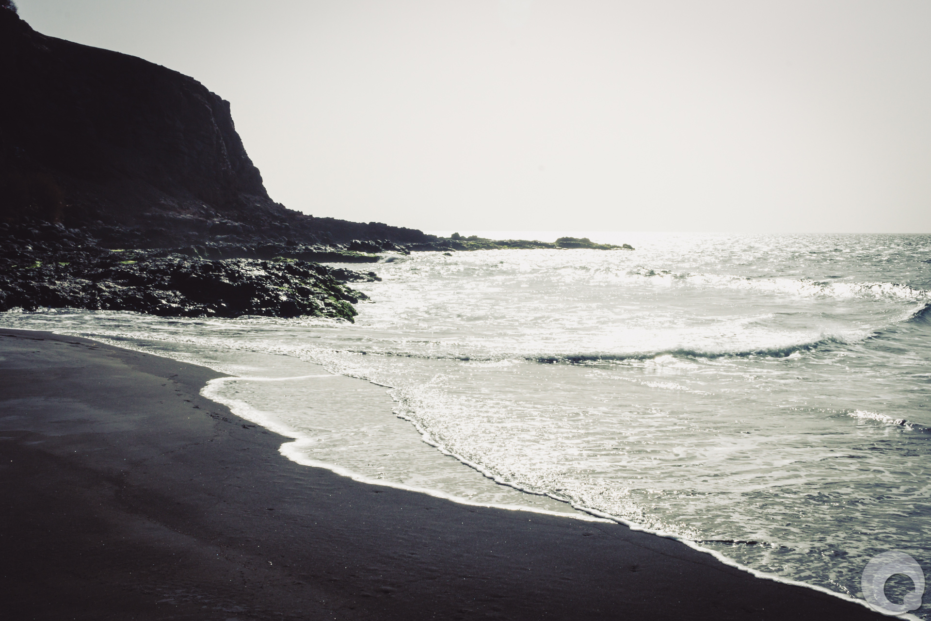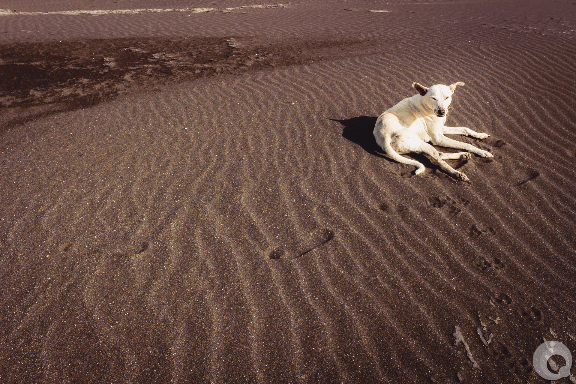 blinding sun … shimmering water … fair coloured dog … black sand … high contrasts … afternoon on the silver beach