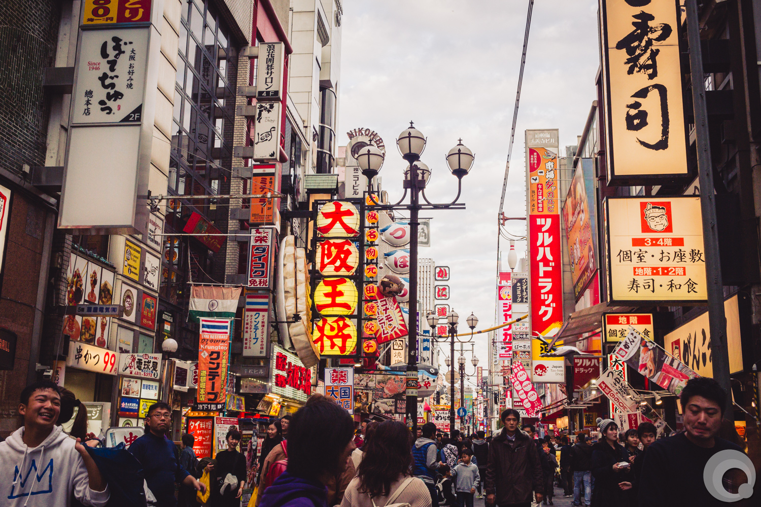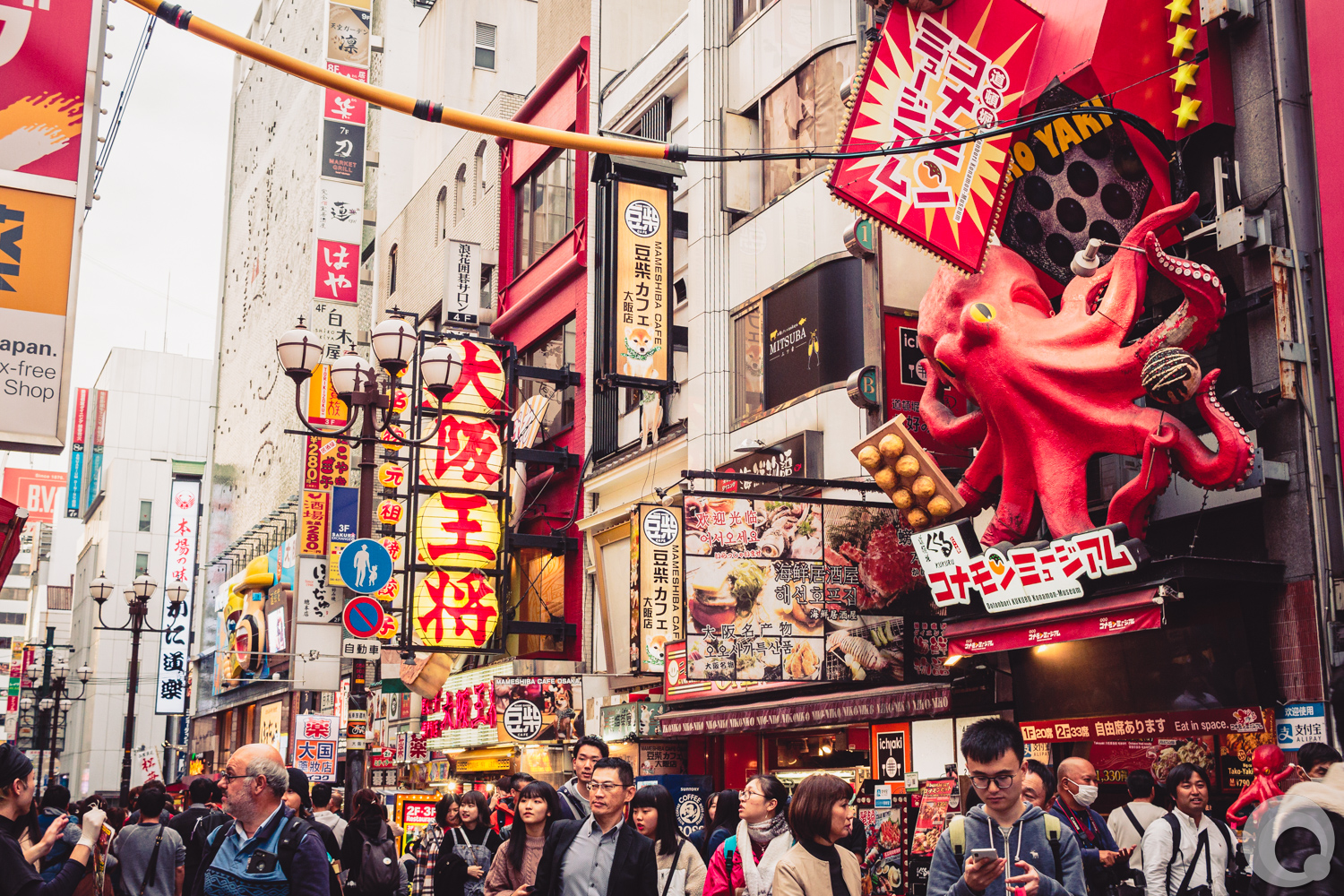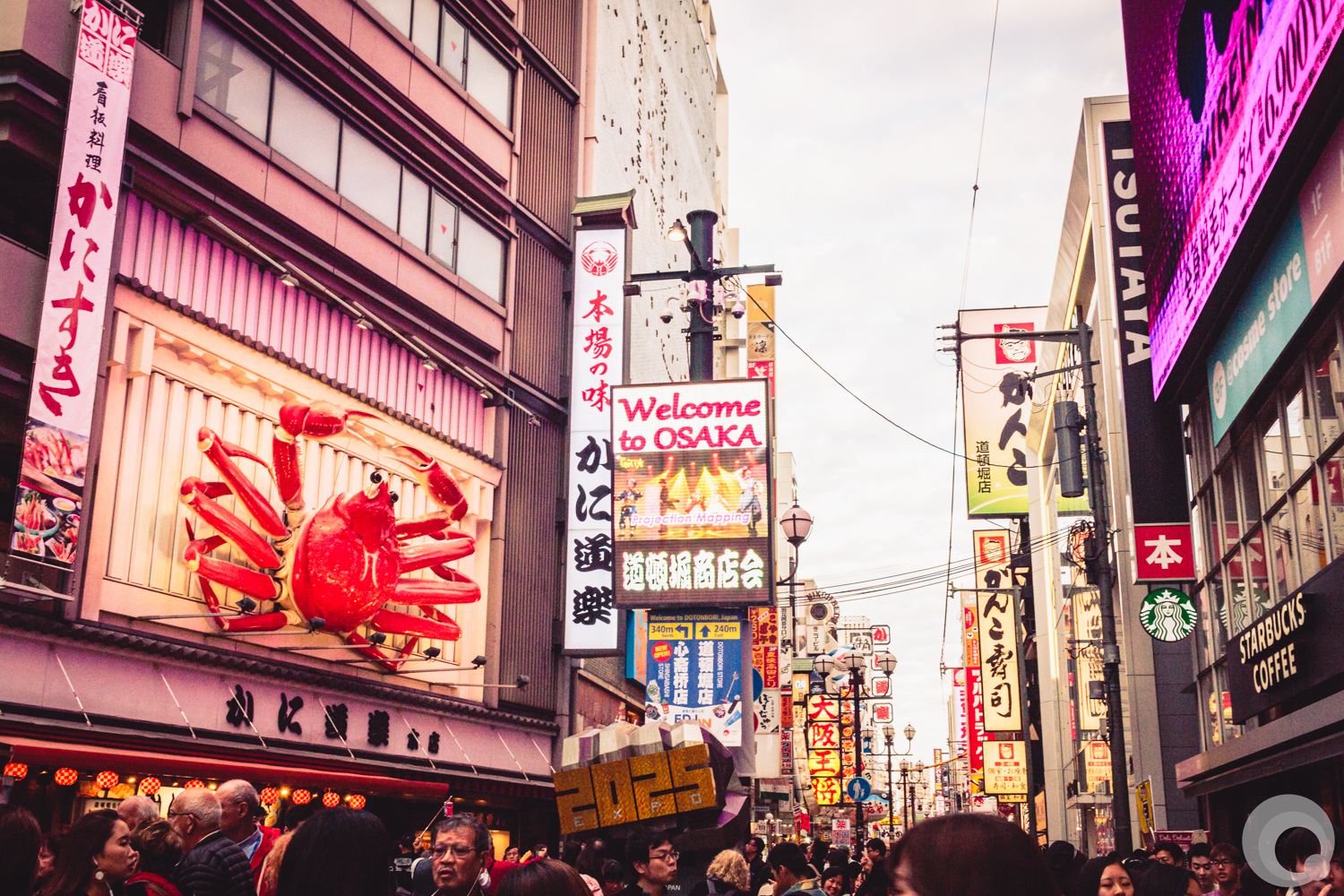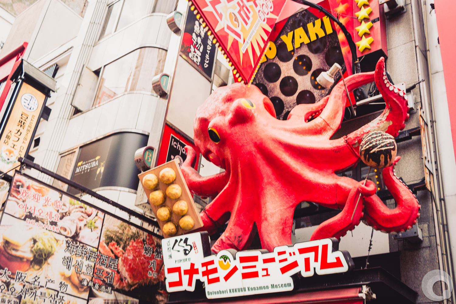 Kuidaore! “ruin yourself with meals in Osaka” or “eat until you drop”! Huge moving 3 dimensional billboards advertise to try the famous Osaka food: takoyaki, crab or japanese beef. Looks inviting?