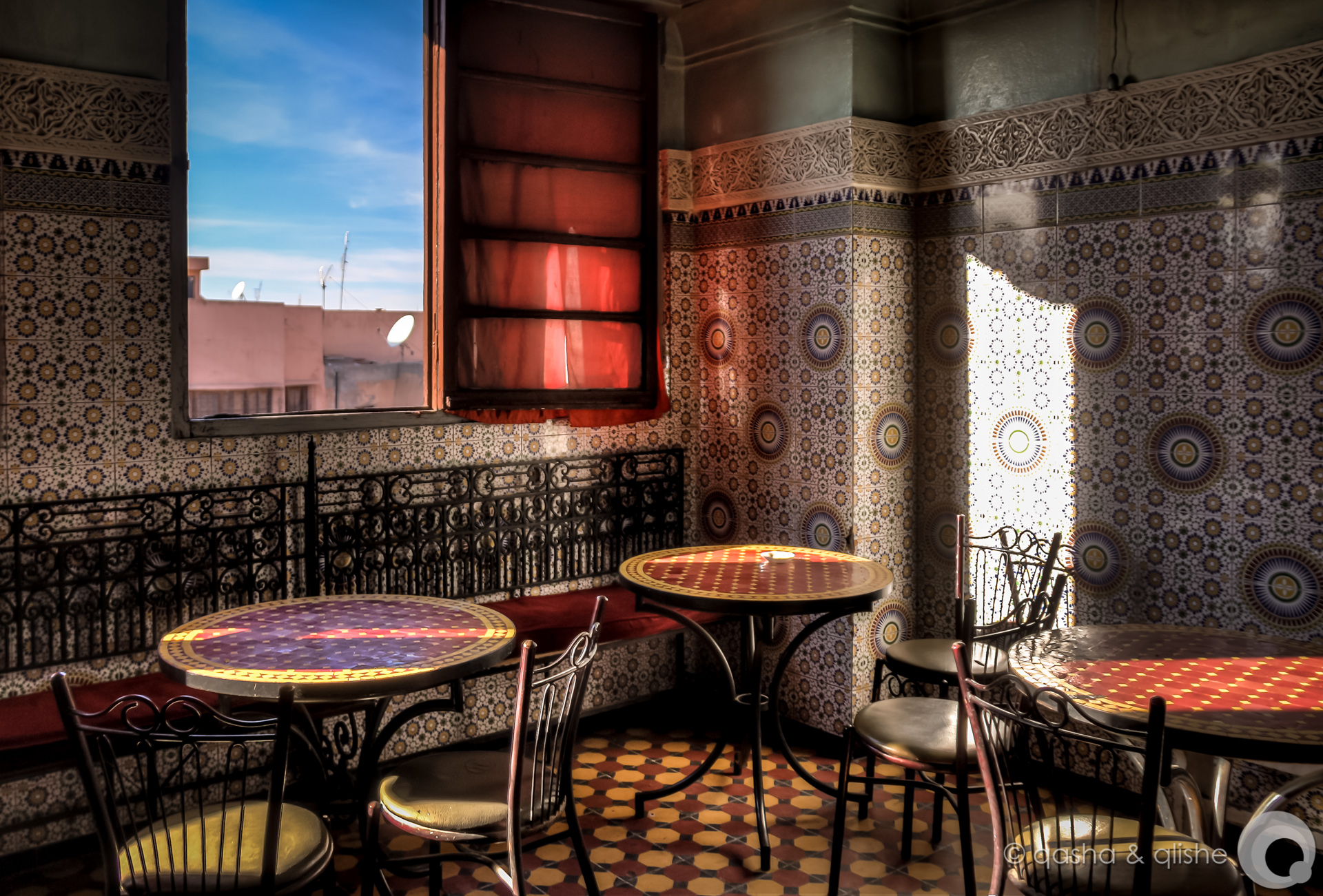 Posted on Posted in blue skies, interieur, marocco, marrakesh, ornamental, patterns, texture, windowsTagged cafe, interieur, iron furniture, marocco, marrakesh, medina, ornamental, patterns, restaurant, windowsLeave a comment