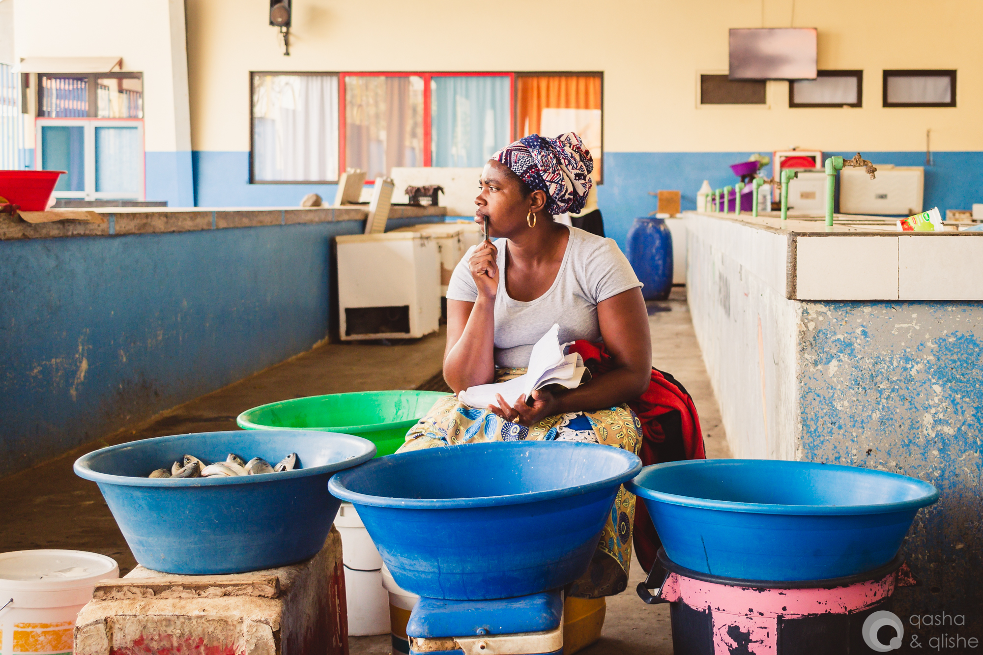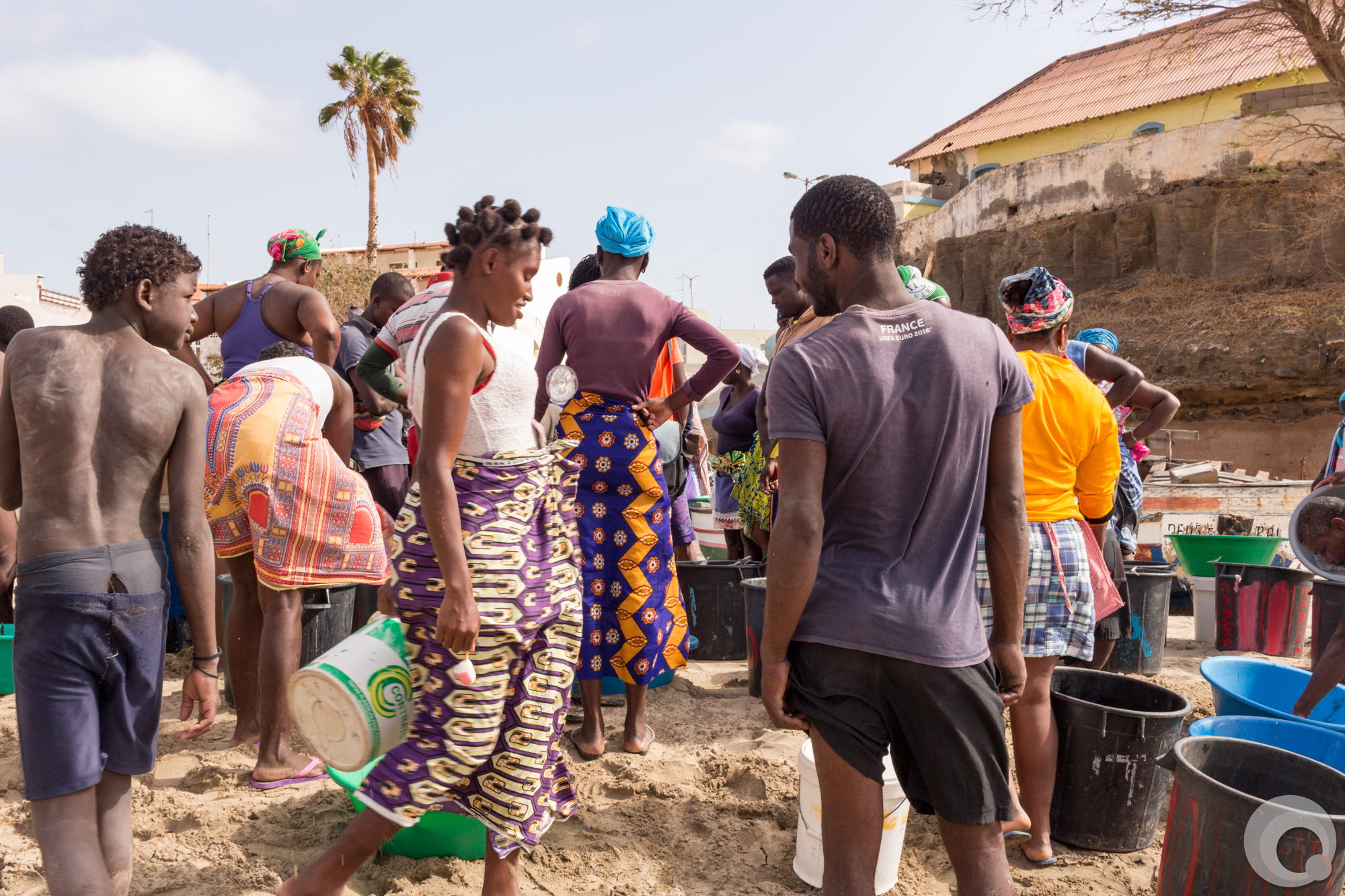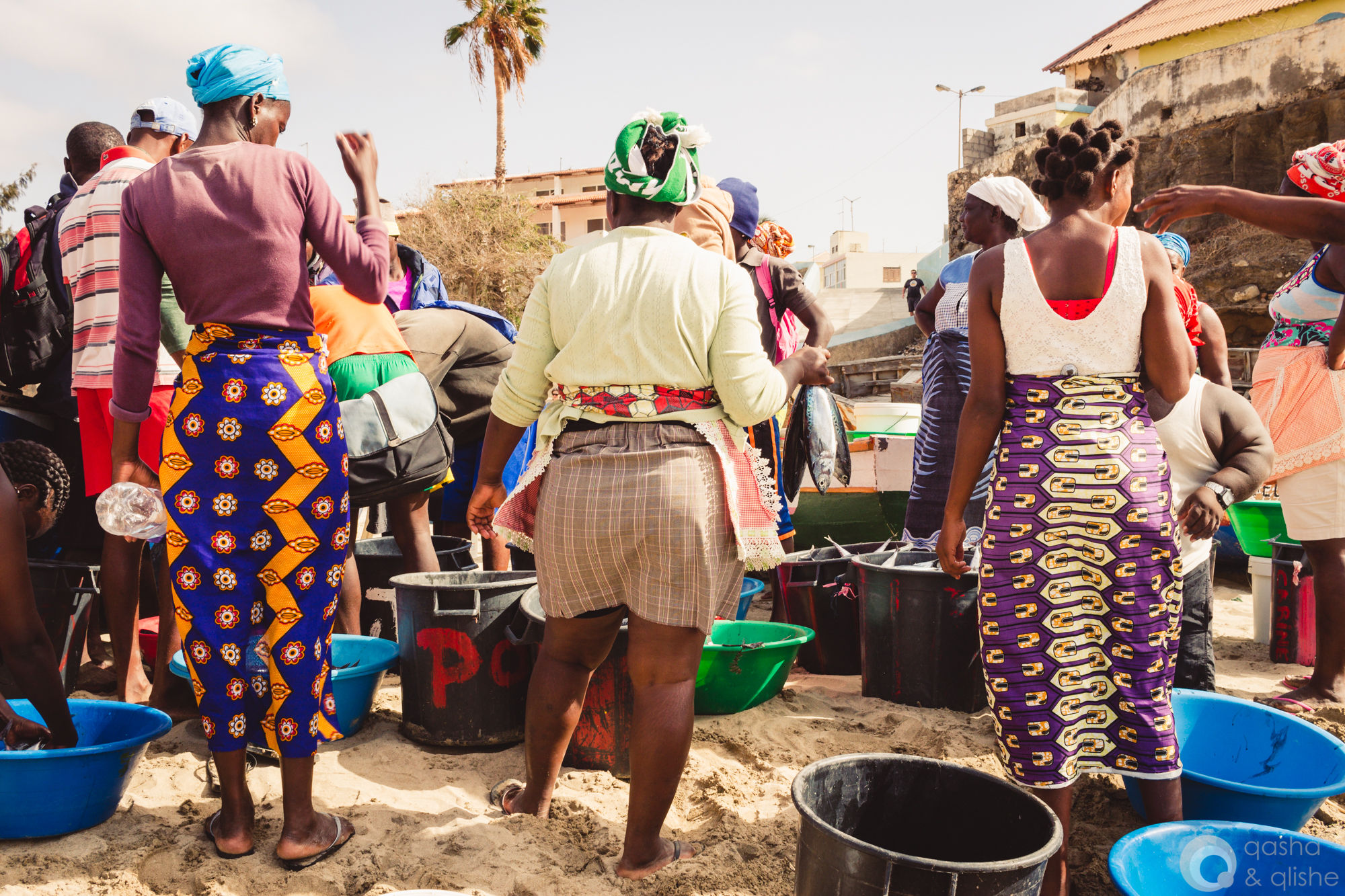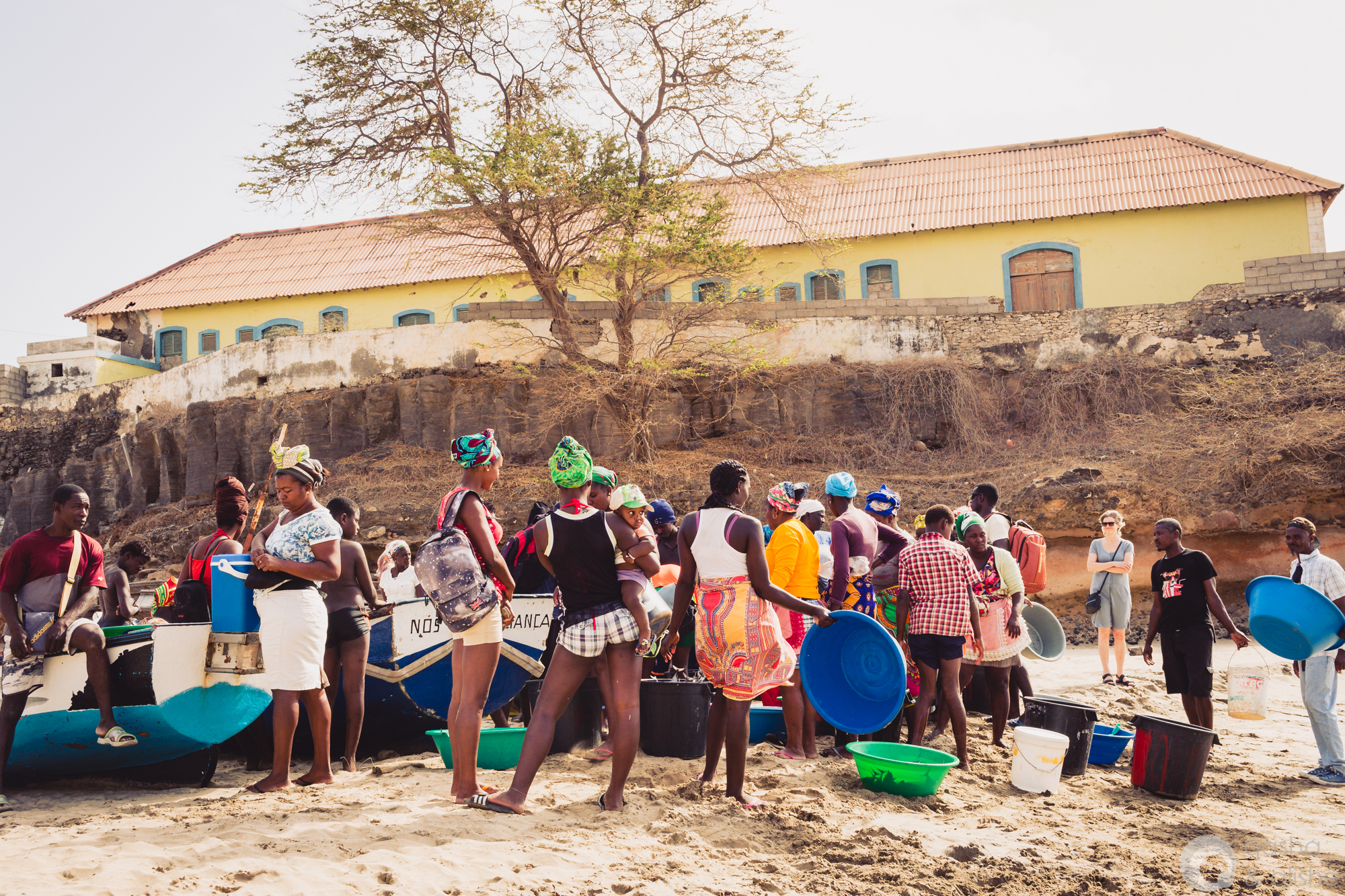 Fishermen selling their catch of the day directly from their boats on the beach in Tarrafal.